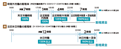 通常は時間外労働が深夜に及ぶことになると思いますので、時間外労働の2割5分以上+深夜労働の2割5分以上の併せて5割以上の割増が必要となります。