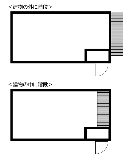 こんなような階段なら、内階段でも『容易に屋外の安全な場所に通ずる階段です』と言い張れるということですね。玄関扉から離れていたり、扉があったりすると容易とは言えないので難しいでしょう。